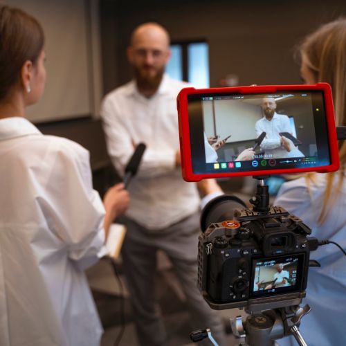 Conteúdos audiovisuais sob medida para treinamentos e comunicação interna, do roteiro à pós-produção.